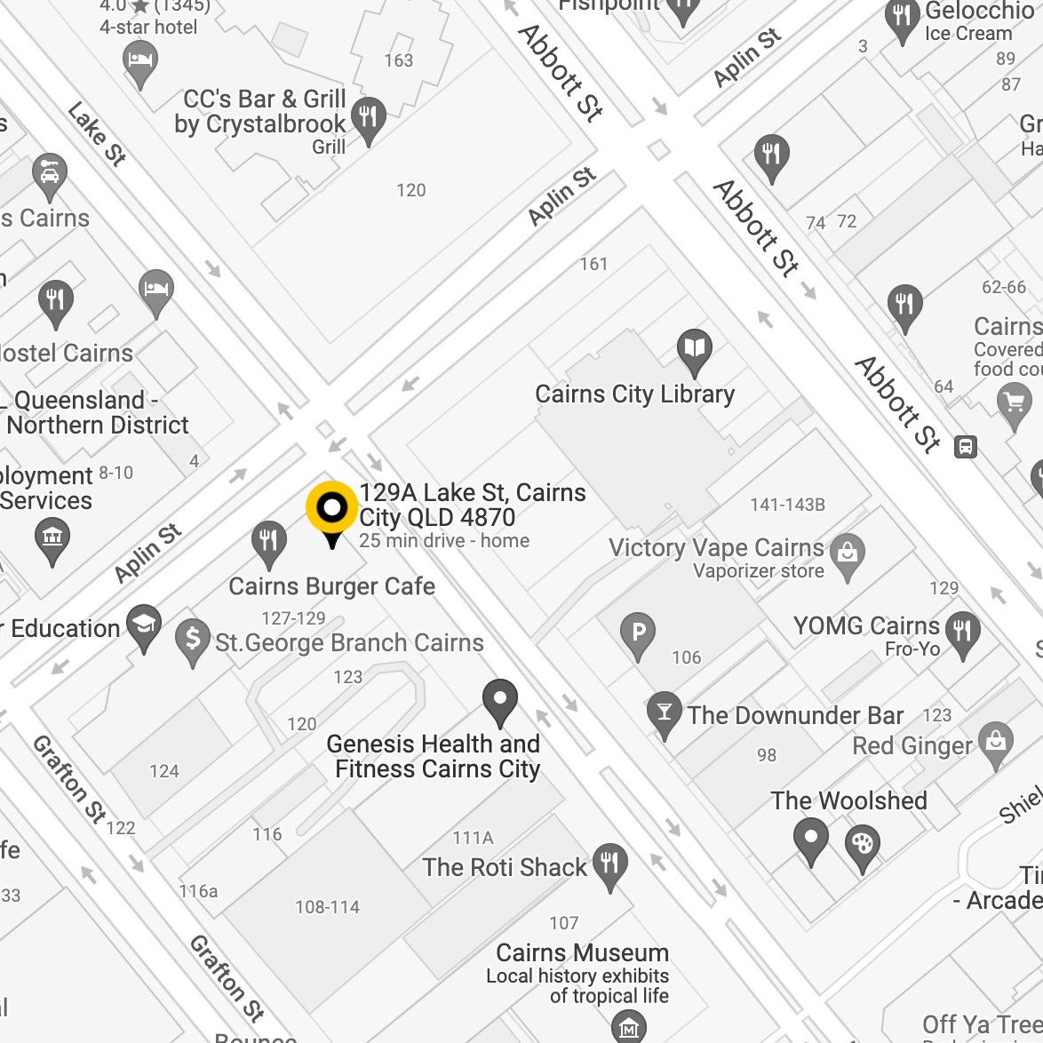 Crangold Centre is located on Cairns principal street, Lake Street, just south of its intersection with Aplin Street.